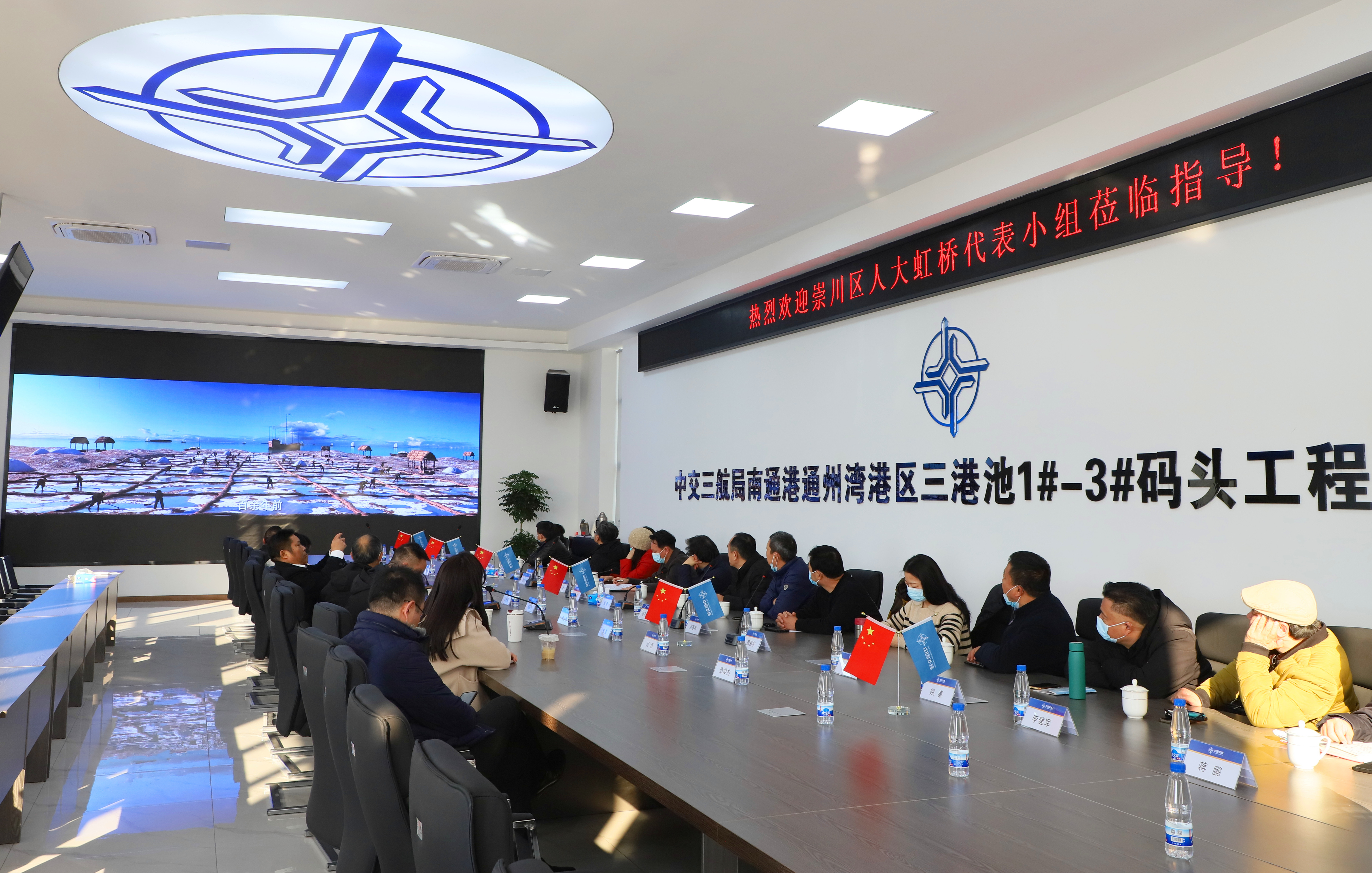 調(diào)研組實(shí)地察看了南通港通州灣港區(qū)三港池1-3碼頭工程現(xiàn)場,聽取了項(xiàng)目實(shí)施情況和工作推進(jìn)情況。全體組員在項(xiàng)目部會(huì)議室觀看了通州灣示范區(qū)宣傳片和南通港通州灣港區(qū)三港池1#-3#碼頭工程介紹短片。